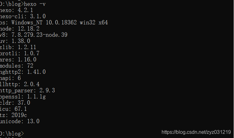 检验安装完成:cnpm install –g hexo-cli