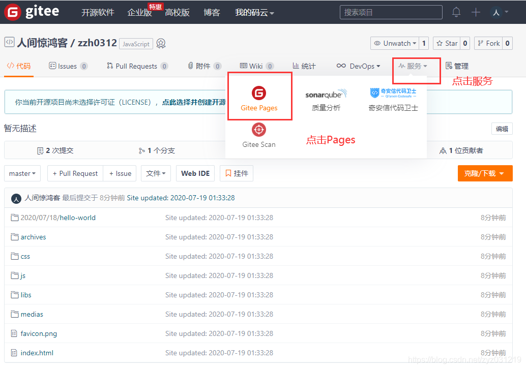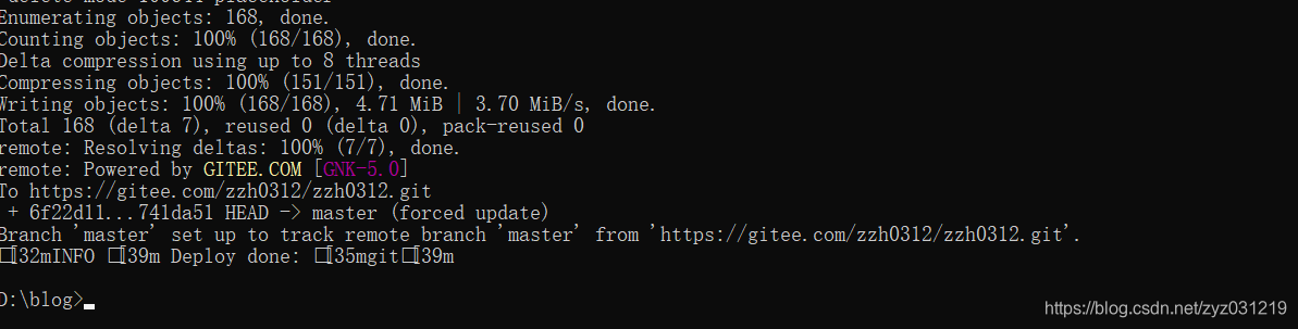 hexo d //上传到远程在码云上新建的仓库
