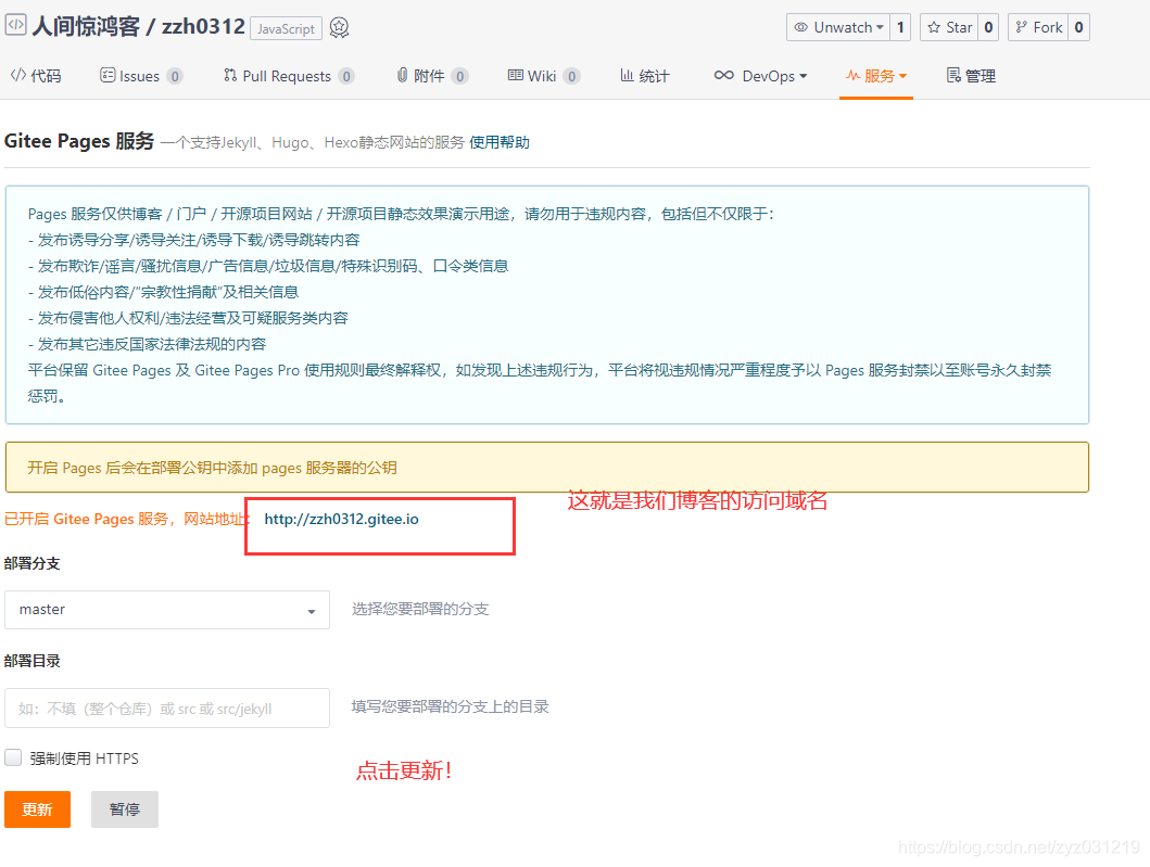 这里尤其注意的是每次更新文章时;